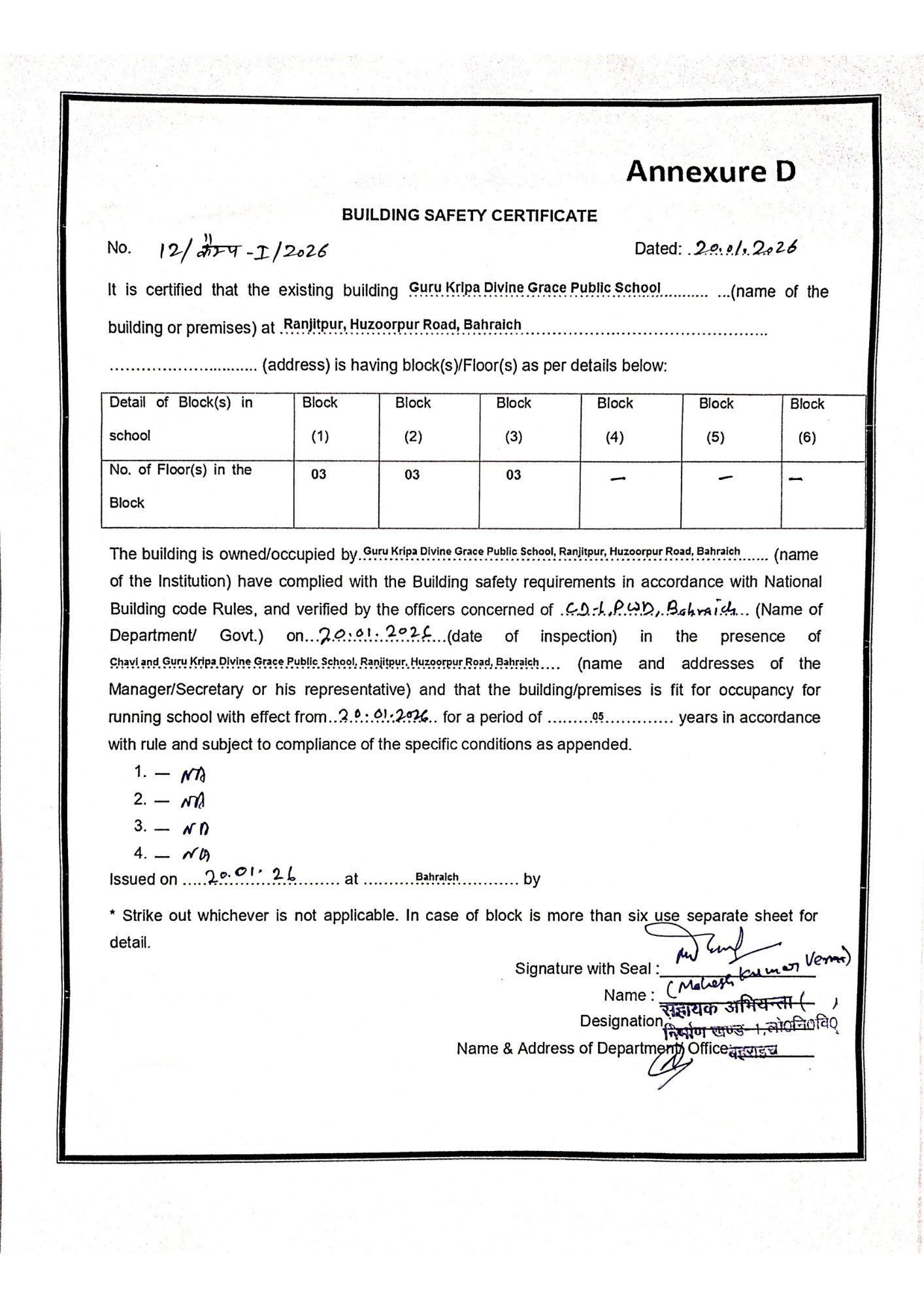 COPY OF VALID BUILDING SAFETY CERTIFICATE AS PER THE NATIONAL BUILDING CODE